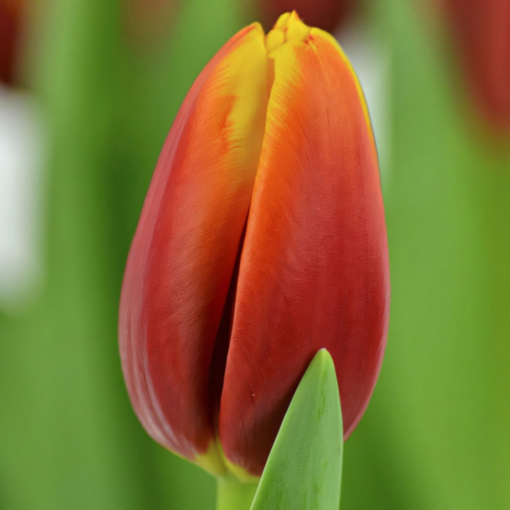 Тюльпан Андре Ситроен из группы Триумф радует солнечной яркостью красок. Его алые лепестки с желтой окантовкой слегка закруглены по краям, что придает цветку трогательный вид. Растение используется для украшения клумб, подходит для зимней выгонки и выращивания на срезку.