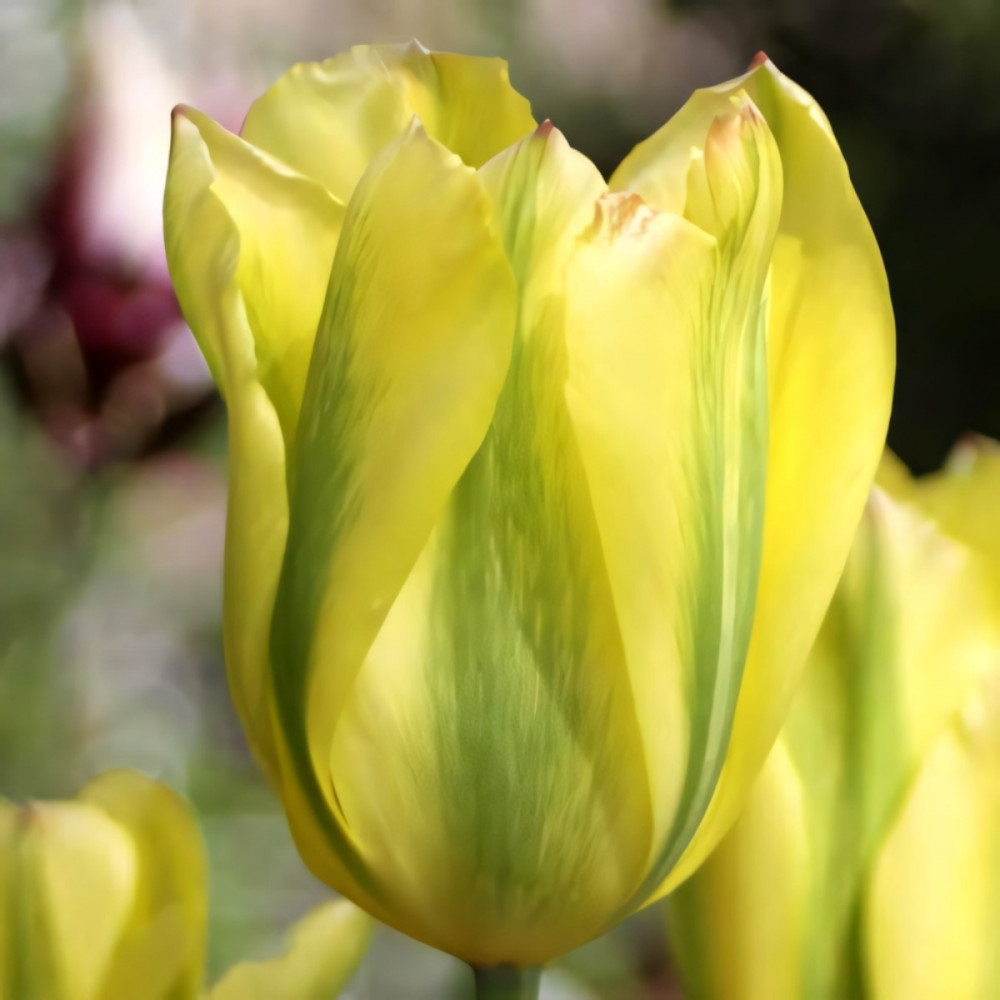 Тюльпан зеленоцветковый Формоза – элегантный сорт с уникальной расцветкой бутонов. Лепестки заостренные, ярко-жёлтого цвета, по спинке проходит зелёная широкая полоса. Цветоносы прочные, высокие – сорт идеально подходит для составления эксклюзивных букетов и оформления садовых клумб. Высота – до 60 см. Срок цветения – вторая половина мая.