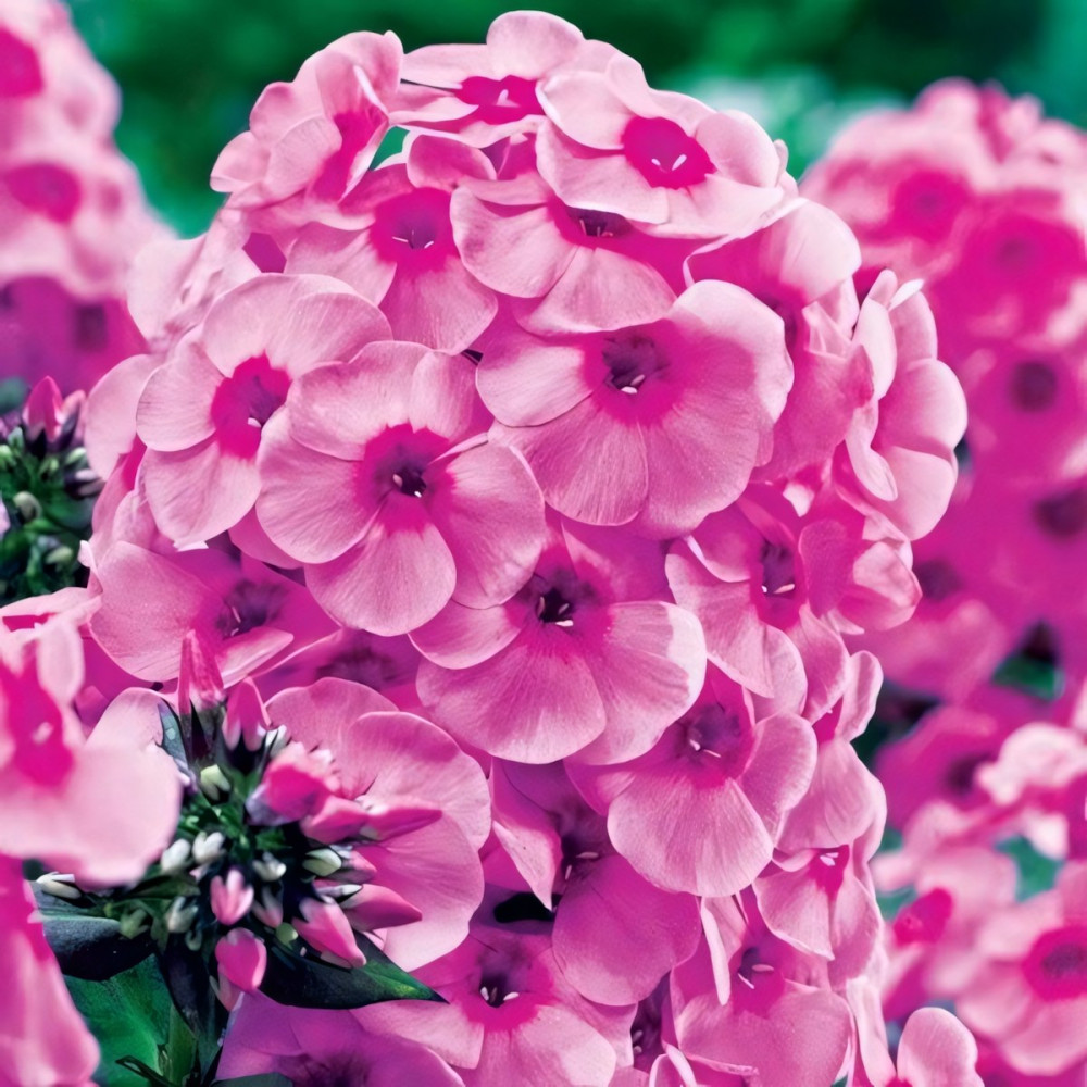 Куст компактный, хорошо облиствленный. Стебли прочные прямостоячие. На их концах образуются соцветия, которые в свою очередь состоят из больших пятилепестковых цветков, сиреневато-розового цвета с более темным глазком. Листья ланцетные, удлиненные, супротивные. Для посадки наиболее подходит полутень, так как на солнце цветки выгорают, а в тени растение - плохо цветет. Неприхотливый многолетник, но лучше растет на рыхлой, хорошо удобренной, влажной почве. Быстро разрастается. Флоксы – на редкость неприхотливые и устойчивые растения, стойко переносящие даже сильные морозы. Размножается - делением куста, черенкованием, отводками. Используется для украшения цветников, бордюров, как в одиночных, так и в групповых посадках.
