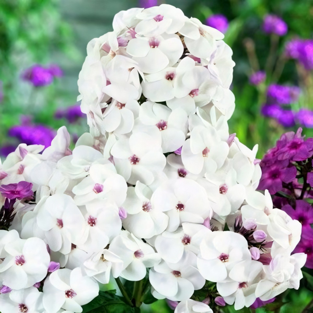 Куст компактный, хорошо облиствленный. Стебли прочные прямостоячие. На их концах образуются соцветия, которые в свою очередь состоят из небольших пятилепестковых цветков белого цвета с красной серединкой. Листья ланцетные, удлиненные, супротивные. Для посадки наиболее подходит полутень, так как на солнце цветки выгорают, а в тени растение - плохо цветет. Неприхотливый многолетник, но лучше растет на рыхлой, хорошо удобренной, влажной почве. Быстро разрастается. Флоксы – на редкость неприхотливые и устойчивые растения, стойко переносящие даже сильные морозы. Размножается - делением куста, черенкованием, отводками. Используют для украшения цветников, бордюров, как в одиночных, так и в групповых посадках.