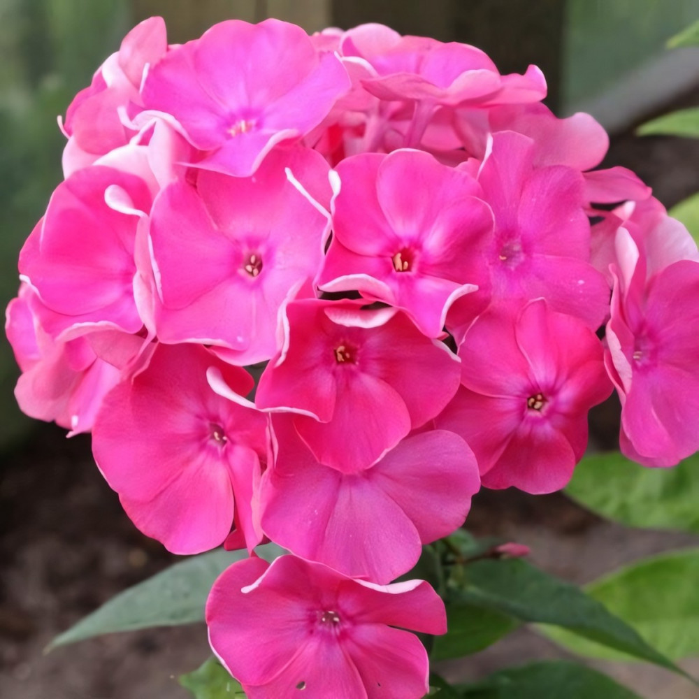 Флокс Jules Sandeau (Жуль Сандо) - растение высотой до 80 см, прочное и компактное; стебли коричневые с оттенком. Листья широкие, блестящие, темно-зеленые. Цветки малиново-розовые с тонким колечком темнее основного тона, диаметром до 4, 5 см, обратная сторона лепестков светлая, лепестки волнистые и немного приподняты; соцветие среднего размера круглое и плотное.
