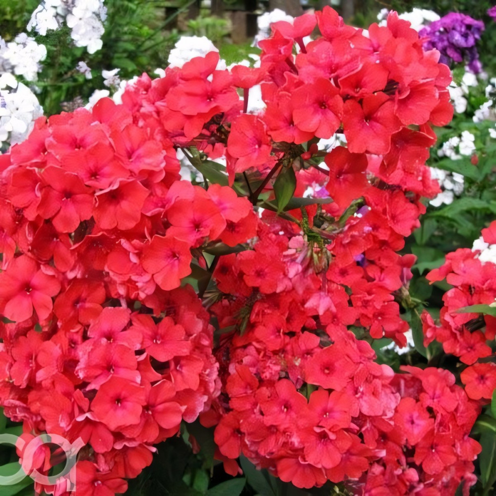 Флокс Маргарита. Яркий малиново-красный с более темным глазком, соцветие округло-коническое, плотное. Куст компактный, прочный.Высота растения 75 см.