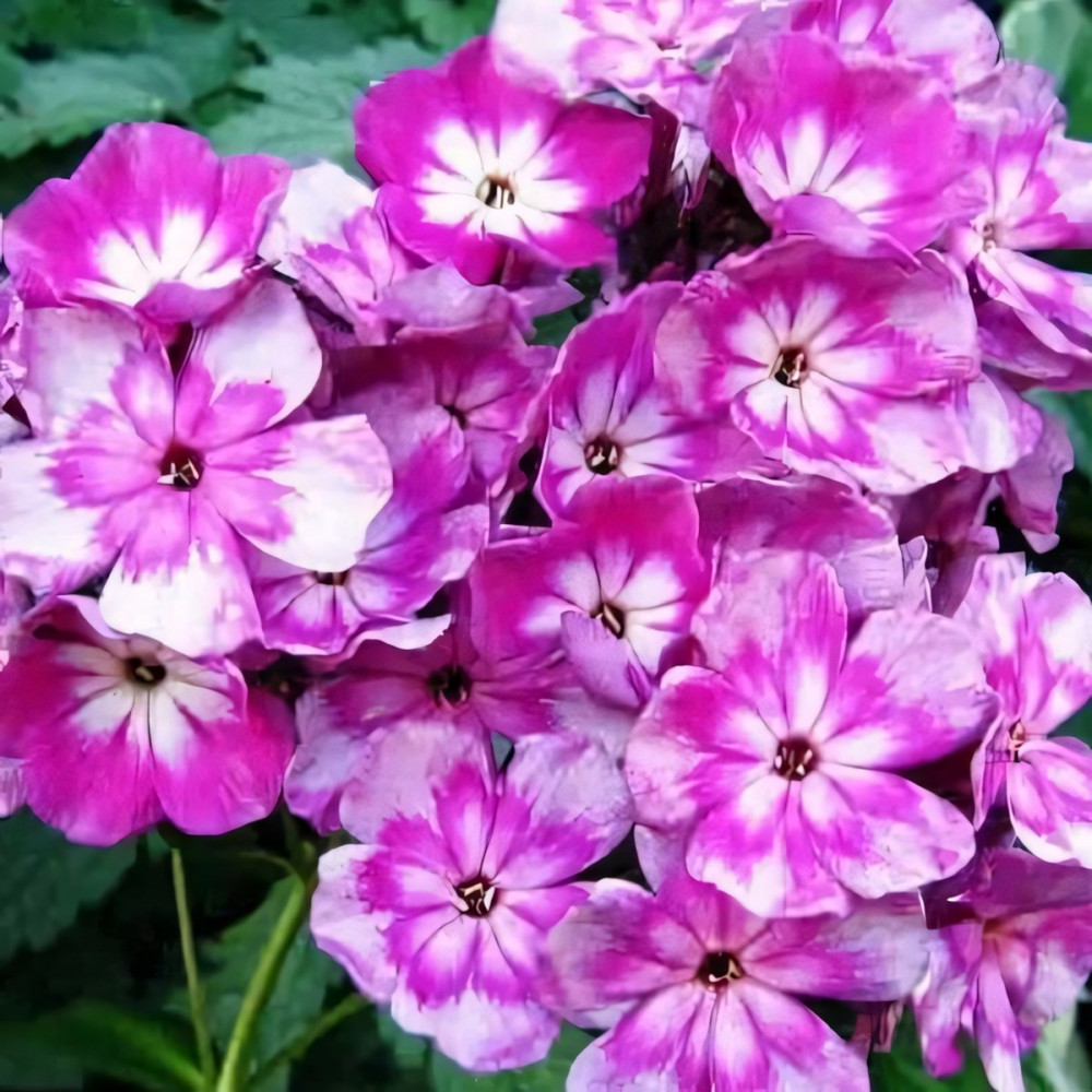 Флокс дымчатый с фиолетово-пурпурной звездочкой, в начале роспуска фиолетово-пурпурный с белой звездой в центре. Соцветие округло-коническое, большое, ветвистое, средней плотности. Куст компактный, устойчивый, зимостойкий. Цветение обильное и продолжительное. Невероятно эффектный и оригинальный флокс. Высота 60-70 см.