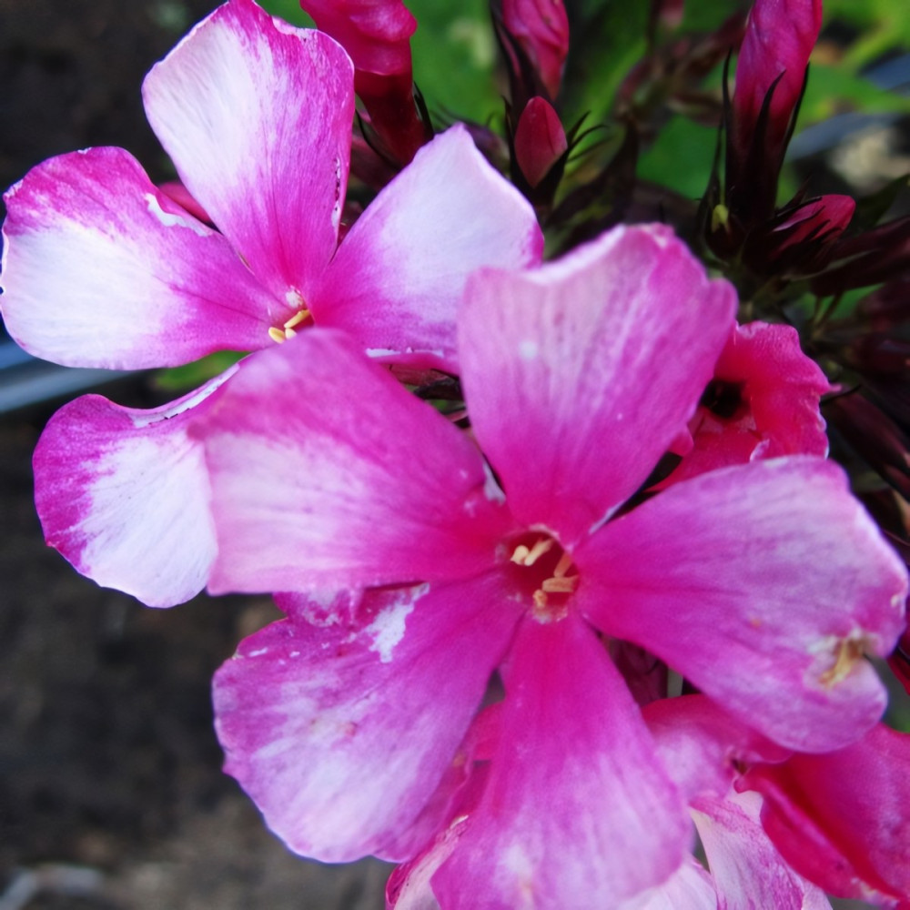 Уход за флоксом: Сводится к регулярному поливу, обработке от вредителей, и внесению комплексных удобрений. Растения нуждаются в подкормке на протяжении всего вегетационного периода, за сезон проводят 5-7 подкормок. Почву необходимо проливать на всю глубину залегания корневой системы. Поливать лучше всего рано утром или поздно вечером. Ни в коем случае нельзя поливать флоксы слишком холодной водой в жаркий день, это может привести к ожогу растения и растрескиванию стебля. Также нежелательно, что бы при поливе вода попадала на нижние листья.