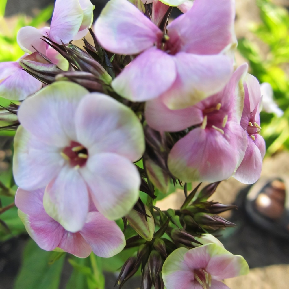 Первый флокс с желтым цветом! Одновременно на одном соцветии нежно-розовые, белые цветы с уникальной желтоватой расцветкой по краю лепестков.