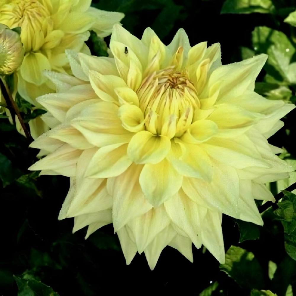 Крупноцветковый сорт. Высокие прочные стебли украшают махровые цветы, поистине гигантского диаметра. Цветы желтого цвета с нежным румянцем. Широкие у основания лепестки заостряются на концах. Цветет продолжительно с июля по сентябрь. Для более обильного цветения удаляют боковые бутоны. Идеально подходит для срезки. Высаживают георгины на хорошо освещенных, защищенных от ветра местах. Предпочитают легкую, плодородную землю. Георгины неприхотливы и легки в выращивании. Размножение происходит путем деления клубней. На зиму клубни выкапывают, просушивают и хранят в сухом прохладном месте.