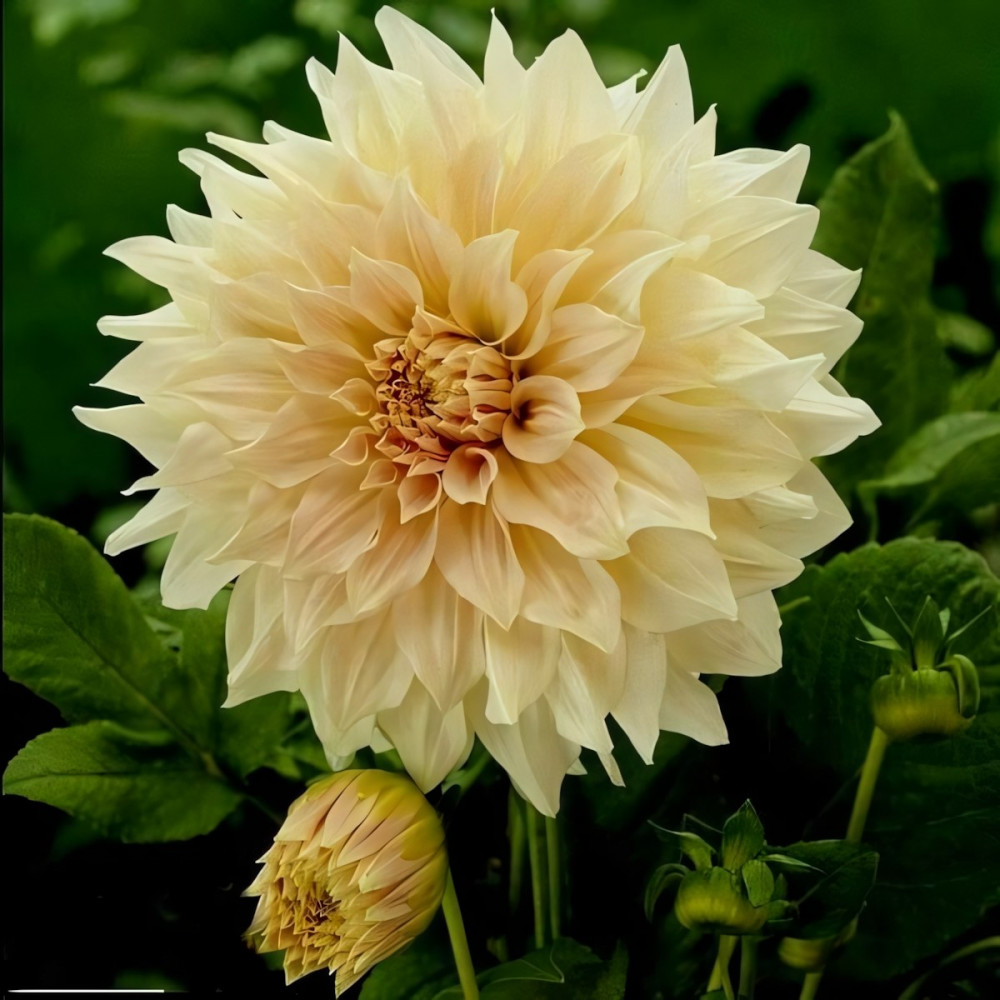 Выведена в Нидерландах в 1967 году. Цвет нежно-бежевый с усилением тона к центру цветка. Крупные пышные цветки со слегка волнистыми лепестками. Этот цветок завораживает, поистине гигантским размером. Высаживают георгины на хорошо освещенных, защищенных от ветра местах. Предпочитают легкую, плодородную землю. Георгины неприхотливы и легки в выращивании. Размножение происходит путем деления клубней. На зиму клубни выкапывают, просушивают и хранят в сухом прохладном месте. Цветет продолжительно с июля по сентябрь.