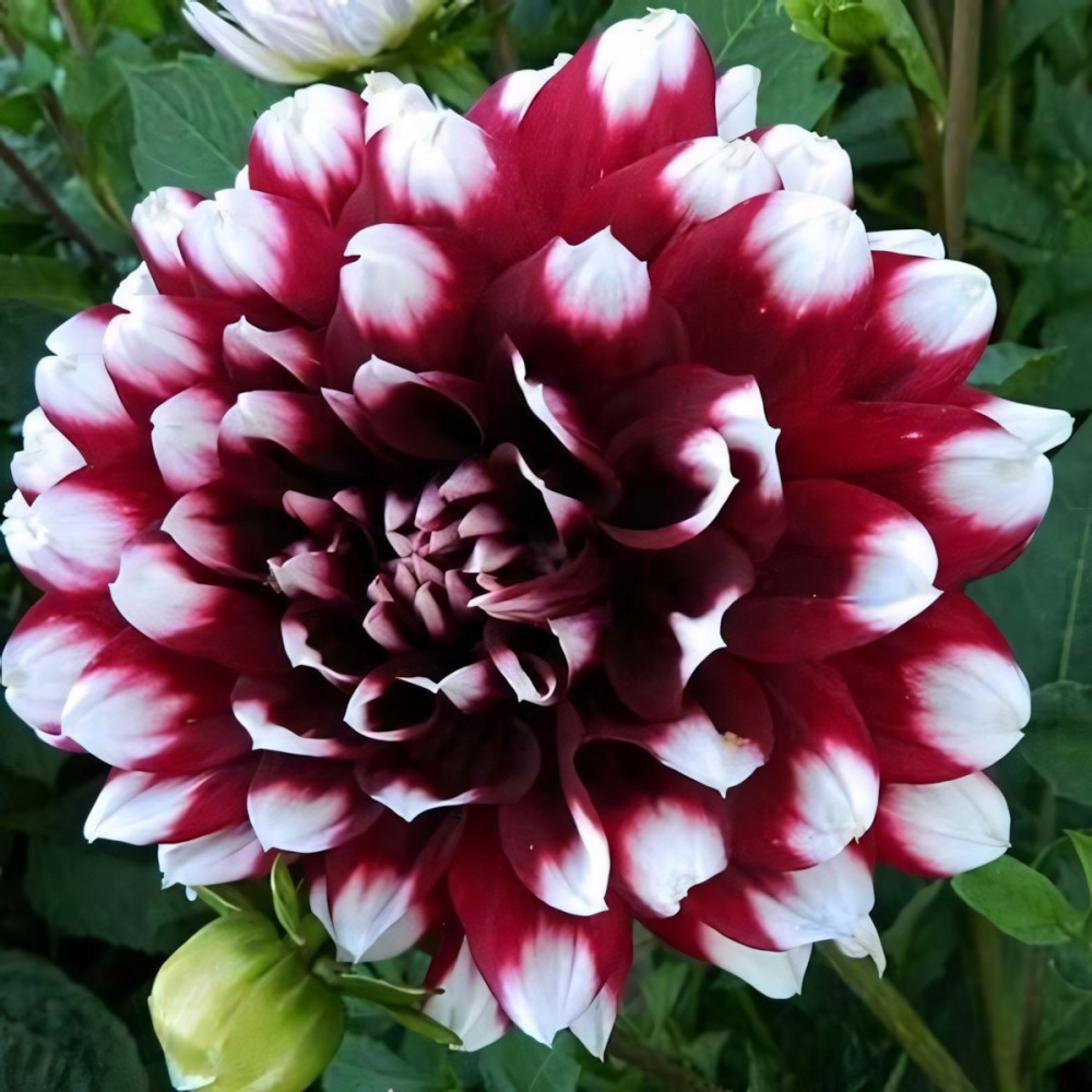 Выведена в США в 1955 году. Великолепный сорт декоративных георгин, высотой до 100 см. Крупные махровые малиново-красные цветки, диаметром 16 см, с белоснежными кончиками создают такой яркий контраст, который просто завораживает! Такая георгина с удовольствием займет центральную позицию в Вашем цветнике, радуя своим обильным цветением до поздней осени. Прекрасно подходит для одиночных посадок на фоне газона, хвойных изгородей или на заднем плане групповых посадок и цветников. Может использоваться на срезку.