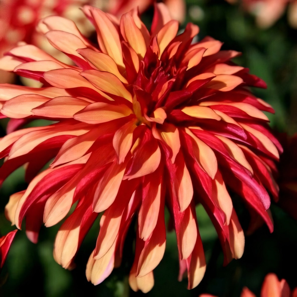 Нижняя сторона лепестка рыжевато-розовая, верхняя сторона кремовая Имеет очень продолжительный срок цветения. Данный вид обладает крепкими стеблями, которые не ломаются даже при сильном ветре. Высаживают георгины на хорошо освещенных, защищенных от ветра местах. Эти растения неприхотливы и просты в выращивании, предпочитая легкую плодородную почву. Прекрасно растут в вазонах и горшках. Служат для украшения террас, балконов и веранд. Весьма красиво выглядят в качестве бордюра.