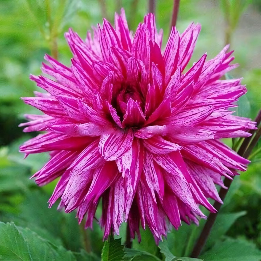 Георгина кактусовая Ambition (Амбишн) - диаметр цветка 15 см, окраска пурпурная. Соцветие игольчатое. Высота 100 см. Высокая устойчивость к заболеваниям. Дает хорошую срезку. Цветение обильное и продолжительное.