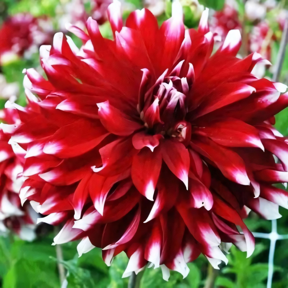 Покорит Вас своей оригинальной двухцветной окраской. Это интересный многолетник с красивыми яркими крупными цветками насыщенного темно-красного цвета с белыми концами лепестков и ярко-зеленой листвой. Украсит солнечные и полузатененные уголки сада. Отлично подходит для срезки. Цветы долго стоят в вазе, сохраняя свежесть, и дарят приятный аромат.