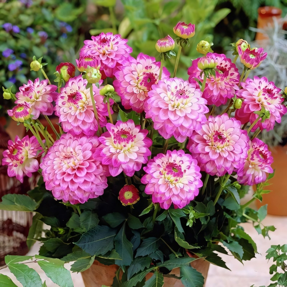 Георгина мелоди Dixie (Дикси) относится к группе бордюрных (низкорослых) георгин. Лепестки нежно-лилового оттенка, плавно переходят в бело-молочный цвет у основания. Отличительная черта этого вида георгин в том, что их не надо подвязывать и удалять боковые побеги. Они растут пышным невысоким кустиком. Непрерывно и продолжительно цветут, вплоть до самых заморозков. Высаживают георгины мелоди Dixie (Дикси) на хорошо освещенных, защищенных от ветра местах. Предпочитают легкую, плодородную землю. Георгины неприхотливы и легки в выращивании. Размножение происходит путем деления клубней. На зиму клубни выкапывают, просушивают и хранят в сухом прохладном месте. Прекрасно растет георгина мелоди Dixie (Дикси) в вазонах и горшках. Служит для украшения террас, балконов и веранд. Очень эффектно смотрится на внешней стороне бордюра.