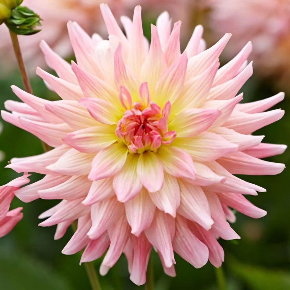 Георгина мелоди Gipsy (Джипси) относится к группе бордюрных (низкорослых) георгин. Махровые лепестки нежного розово-кораллового цвета заостряются на концах. Центр соцветия бледно желтый. Высаживают георгины на хорошо освещенных, защищенных от ветра местах. Предпочитают легкую, плодородную землю. Георгины неприхотливы и легки в выращивании. Размножение происходит путем деления клубней. На зиму клубни георгины мелоди Gipsy (Джипси) выкапывают, просушивают и хранят в сухом прохладном месте. Прекрасно растут в вазонах и горшках. Служат для украшения террас, балконов и веранд. Очень эффектно смотрятся на внешней стороне бордюра. Отличительная черта этого вида георгин в том, что их не надо подвязывать и удалять боковые побеги. Георгина мелоди Gipsy (Джипси) растет пышным невысоким кустиком. Непрерывно и продолжительно цветет, вплоть до самых заморозков. Количество в упаковке: 1 шт.