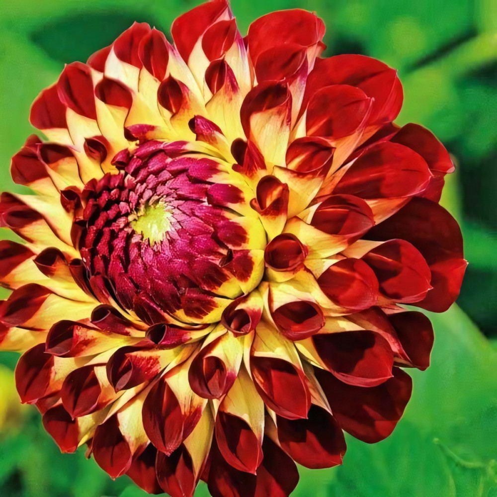 Георгина помпонная Jowey Joshua (Джоуи Джошуа) - высота растения 90 см. Цветок диаметром 10 см, контрастный, эффектный, с трубчатыми лепестками. Верхняя часть бордовая, внутри кремовая.