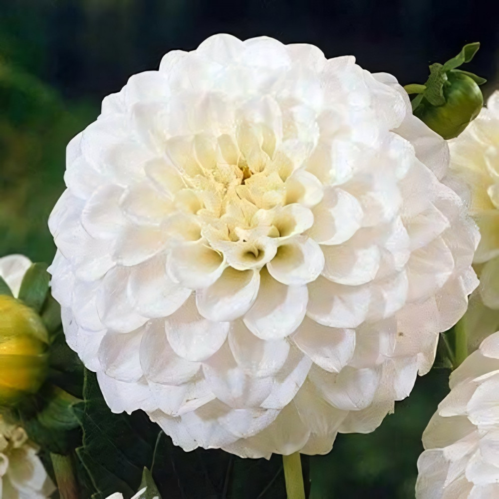 Георгина помпонная Petra's Wedding (Петраз Веддинг) – высота растения 65 см. Цветок диаметром 10 см, белой окраски. Их прекрасные компактные цветки идеально подойдут для любого оформления, и добавят воздушной элегантности и свежести. Как и другие помпонные георгины, Петрас Веддинг очень устойчивы в срезке – жизнь в вазе до 10 дней.