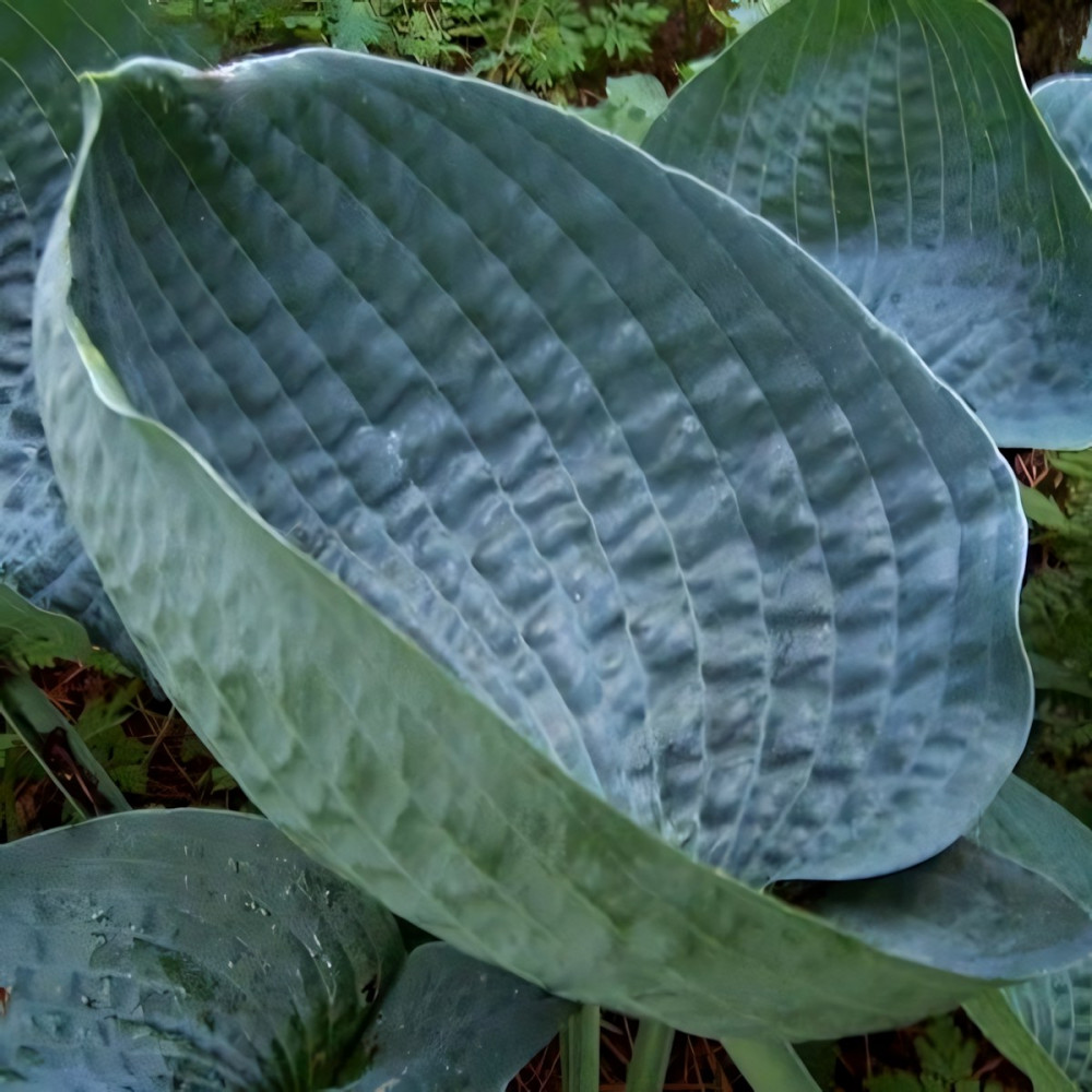Популярный сорт хосты среди садоводов России. Листья плотные, синие, чашеобразной формы, гофрированные, с глубокими рельефными полосками. Цветок почти белый, с лёгким лавандовым оттенком.