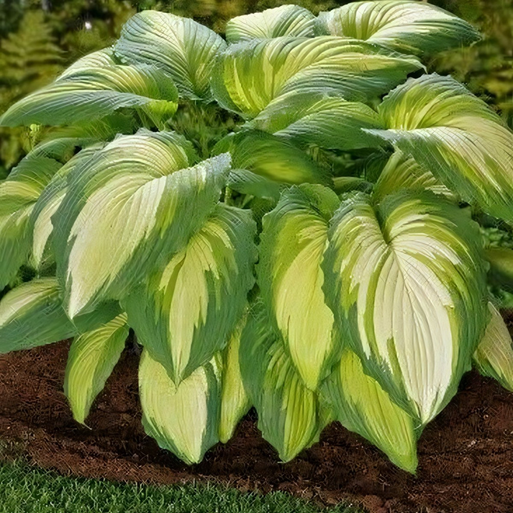Огромная хоста! Крупные трехцветные листья с необыкновенным жилкованием. Форма куста вазообразная. Очень красивая!!!