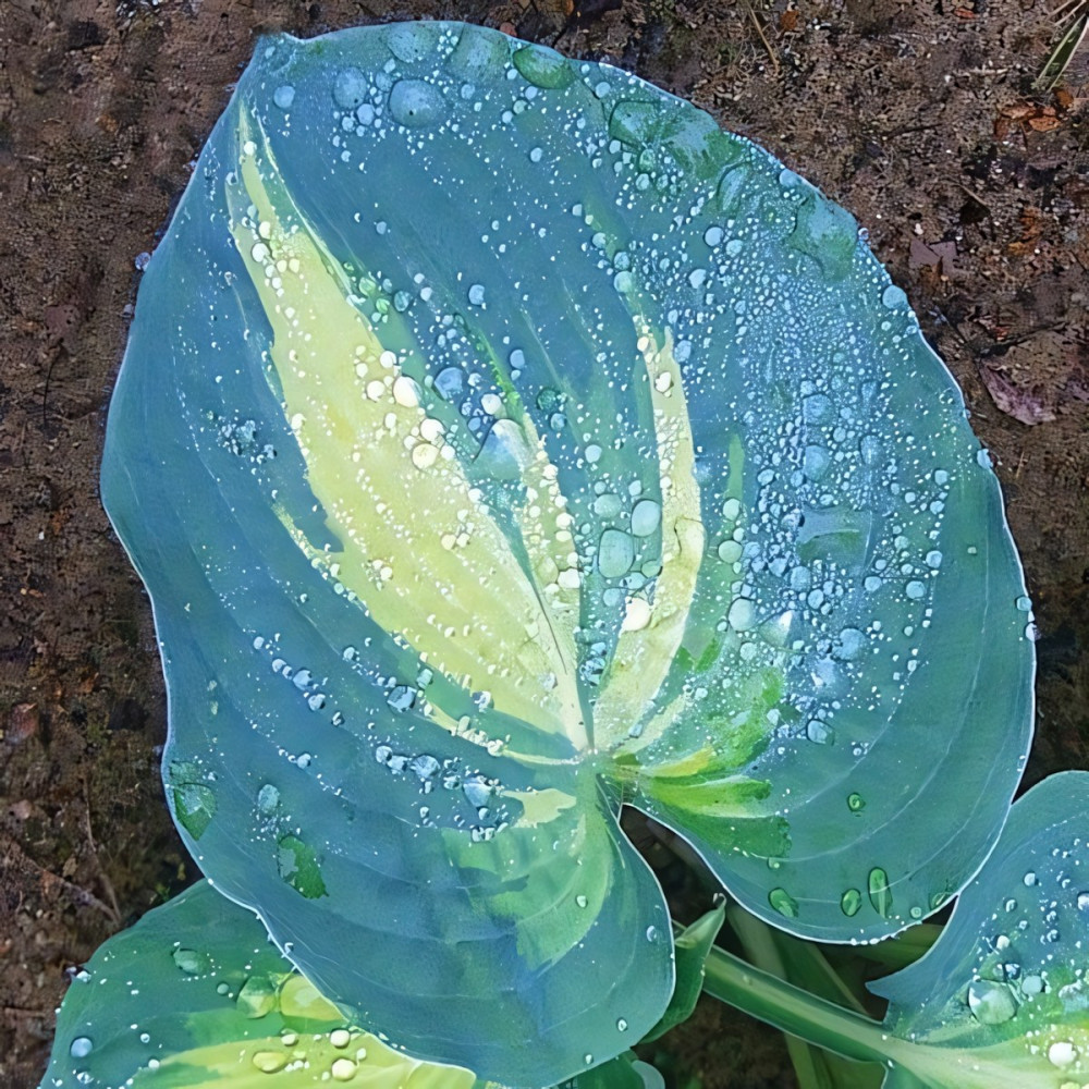 Эта, среднего размера хоста, очень популярна у садоводов!!! Листья округло-сердцевидной формы, плотные, слегка морщинистые, с хорошо выраженными жилками, темного голубовато-зеленого цвета с желто-зеленым центром, переходящим в цвет слоновой кости. Цветки белые, с лавандовым оттенком.