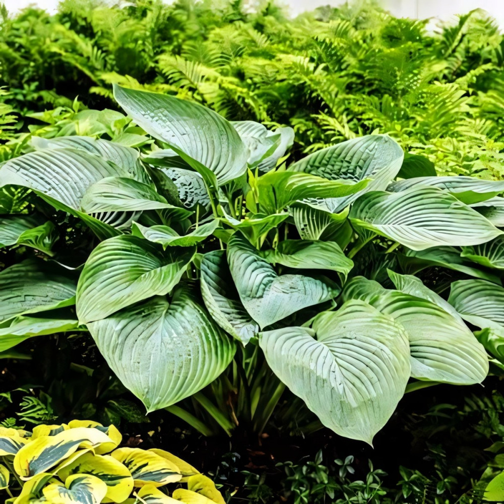 Считается самой большой хостой в мире! Гигантские листья с вафельной структурой. Весной листья имеют голубоватый оттенок за счет воскового налета, который в течении лета разрушается и листва становится темно-зеленой.