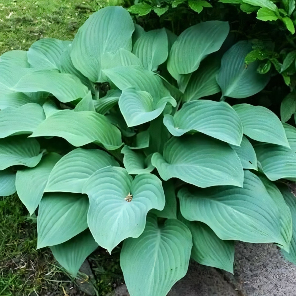 Очень большая хоста вазообразной формы. Листья морозно-сине-зелёные на длинных почти вертикальных черешках. Цветки светло-фиолетовые.