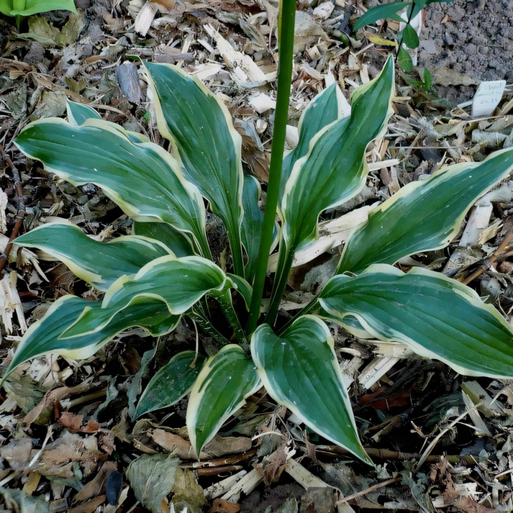 Хорошо нарастающая вертикальная хоста, имеет плотный узкий длинный лист темно-зеленого цвета со светло-желтой оборкой. Цветки лавандовые.