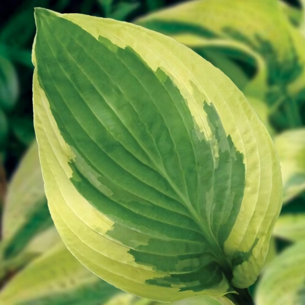 Лиственно-декоративное растение. Эта, среднего размера хоста впишется в любую композицию! Листья плотные, округлые, слегка ребристые, зелёно-голубые с широкой кремово-белой каймой. Цветки светлые, лавандовые.