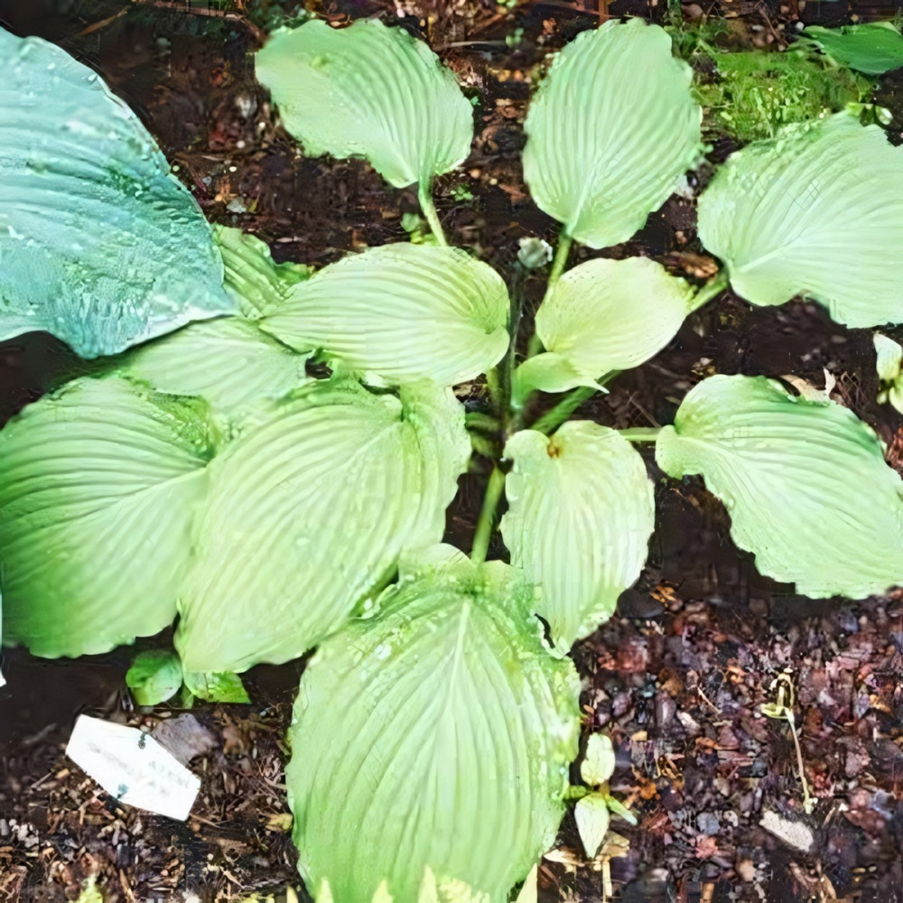 Большая хоста с зелеными листьями с ярко выраженным жилкованием, край переходит в красивую оборочку. Величественная и красивая. Рост умеренный.