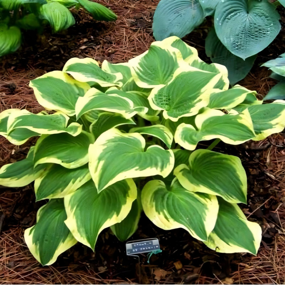 Листья широко-овальные с острым концом, светло-зелёные с кремовым окаймлением, которое в течение лета изменяет цвет на почти чисто белый. Цветет почти белыми с лёгким лавандовым оттенком цветами. Устойчивый к болезням сорт. Нарастает быстро.