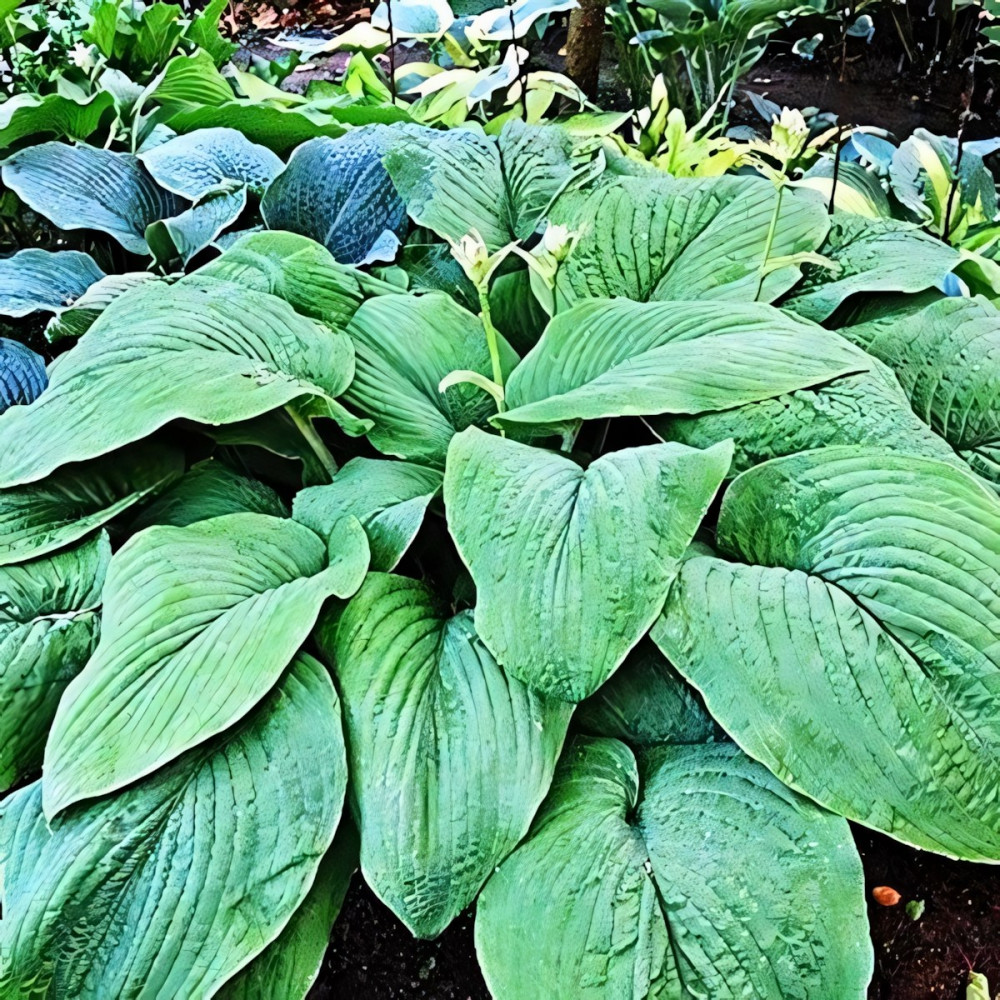 Этому гиганту потребуется очень много места!!! Крупная хоста! Огромная красавица! Большие листья ярко-зеленого цвета с редкими прожилками и cердцевидной формой придают хосте свой неотразимый шарм. Цветки светло-сиреневые. Для достижения крупного размера ее нужно сажать в тень с хорошей почвой и постоянными поливами. При недостатке полива растение мельчает.