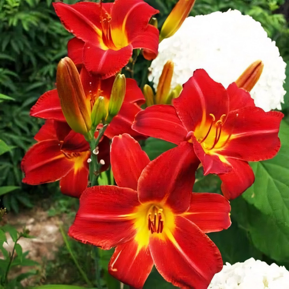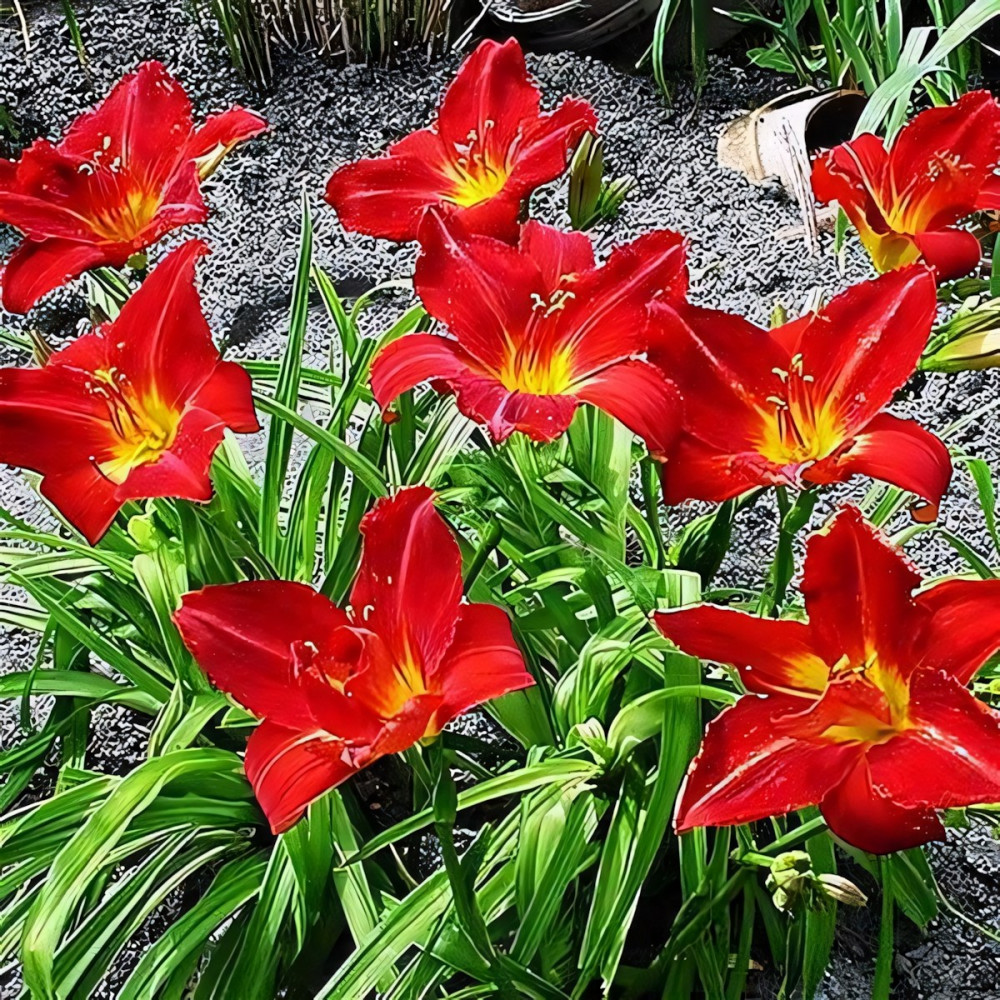 Посадка лилейника: Для посадки культуры необходима посадочная яма большего диаметра, чем корневая система растения. На дно лунки насыпается холмик из плодородной почвы, вносится столовая ложка гранулированного комплексного цветочного удобрения или перепревший навоз, разбавленный древесной золой. На вершине холмика размещают растение, аккуратно расправляя его корневую систему и засыпая ее грунтом так, чтобы корневая шейка не была заглублена ниже 2 см. Посадочную яму необходимо тщательно заполнить грунтом, последовательно уплотняя пространство таким образом, чтобы в земле не оставалось пустот. Засыпанную землей лунку обильно увлажняют.
