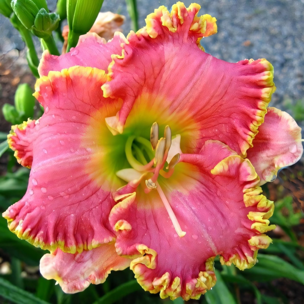 Цветки кораллово-розовые с жёлтой каймой и желтым горлом, гофрированные. Листва узкая, мечевидная. Цветение обильное, повторное. Нежный аромат лилейника Divas Choice (Дивас Чойс) привлечет внимание всех истинных любителей цветов.