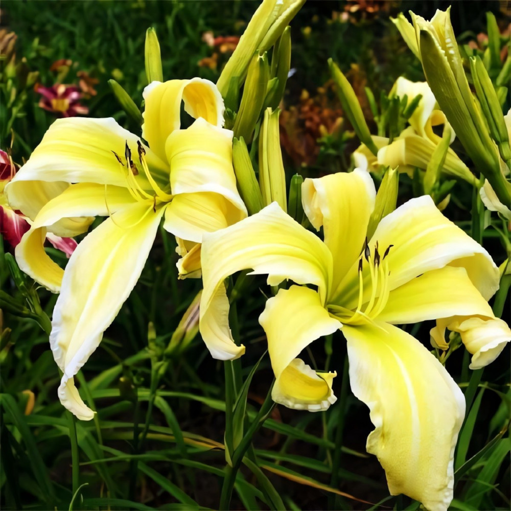 Посадка лилейника: Для посадки культуры необходима посадочная яма большего диаметра, чем корневая система растения. На дно лунки насыпается холмик из плодородной почвы, вносится столовая ложка гранулированного комплексного цветочного удобрения или перепревший навоз, разбавленный древесной золой. На вершине холмика размещают растение, аккуратно расправляя его корневую систему и засыпая ее грунтом так, чтобы корневая шейка не была заглублена ниже 2 см. Посадочную яму необходимо тщательно заполнить грунтом, последовательно уплотняя пространство таким образом, чтобы в земле не оставалось пустот. Засыпанную землей лунку обильно увлажняют.