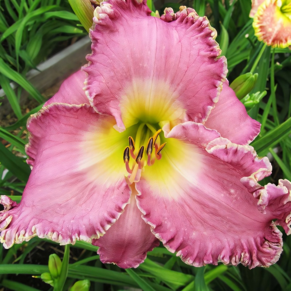 Ярко лавандового цвета, со светло серебристым водяным знаком и гофрированной каймой, этот лилейник не оставляет никого равнодушным. Очень нежная и яркая расцветка! Обильно цветет! Хорошо нарастает!