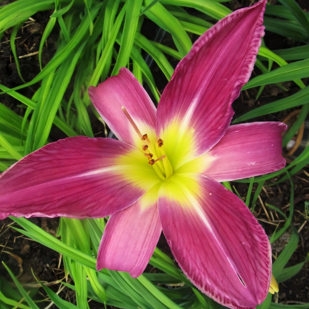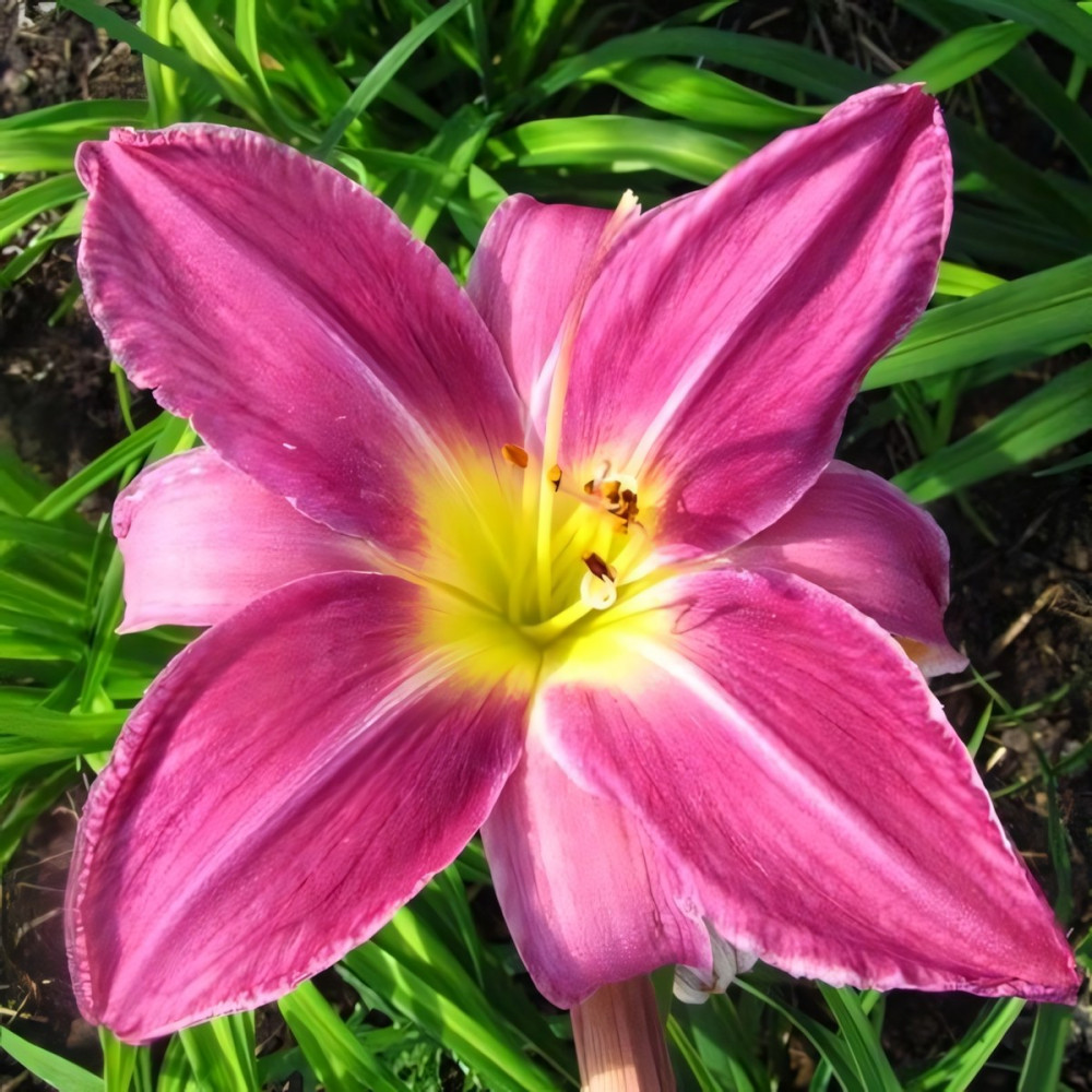 Насыщенно-лавандовый, с большим, ярким желтым горлом. Визуально цветок очень украшает светлая средняя линия. Душистый. Высота растения - 61 см, диаметр цветка - около 18 см.