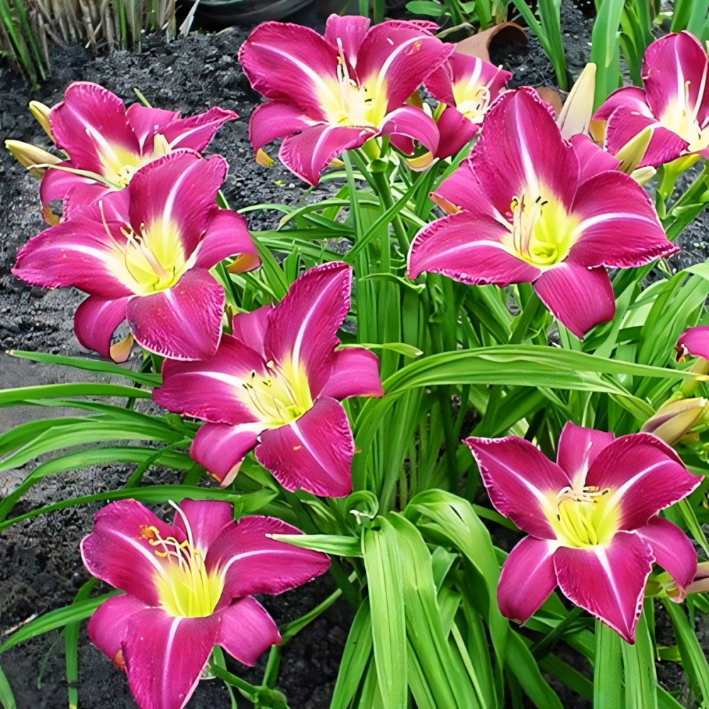 Посадка лилейника: Для посадки культуры необходима посадочная яма большего диаметра, чем корневая система растения. На дно лунки насыпается холмик из плодородной почвы, вносится столовая ложка гранулированного комплексного цветочного удобрения или перепревший навоз, разбавленный древесной золой. На вершине холмика размещают растение, аккуратно расправляя его корневую систему и засыпая ее грунтом так, чтобы корневая шейка не была заглублена ниже 2 см. Посадочную яму необходимо тщательно заполнить грунтом, последовательно уплотняя пространство таким образом, чтобы в земле не оставалось пустот. Засыпанную землей лунку обильно увлажняют.
