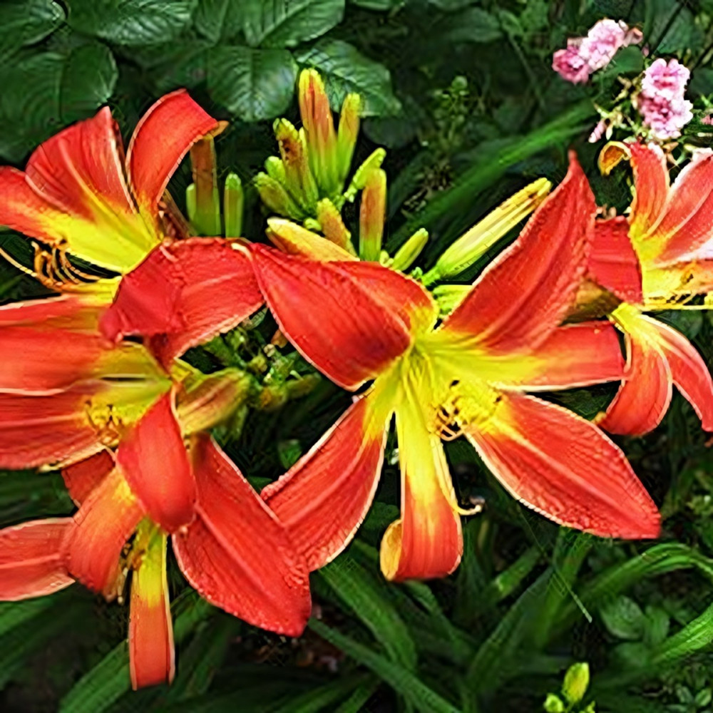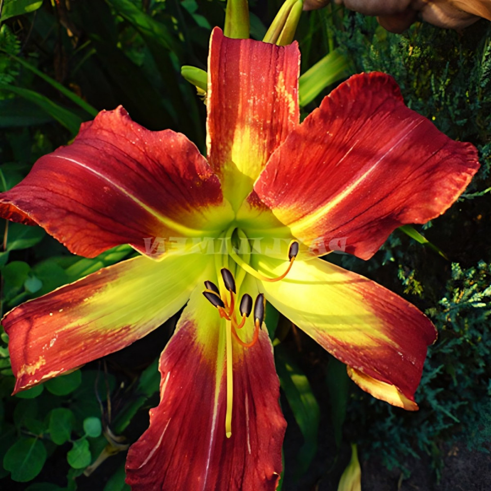 Посадка лилейника: Для посадки культуры необходима посадочная яма большего диаметра, чем корневая система растения. На дно лунки насыпается холмик из плодородной почвы, вносится столовая ложка гранулированного комплексного цветочного удобрения или перепревший навоз, разбавленный древесной золой. На вершине холмика размещают растение, аккуратно расправляя его корневую систему и засыпая ее грунтом так, чтобы корневая шейка не была заглублена ниже 2 см. Посадочную яму необходимо тщательно заполнить грунтом, последовательно уплотняя пространство таким образом, чтобы в земле не оставалось пустот. Засыпанную землей лунку обильно увлажняют.