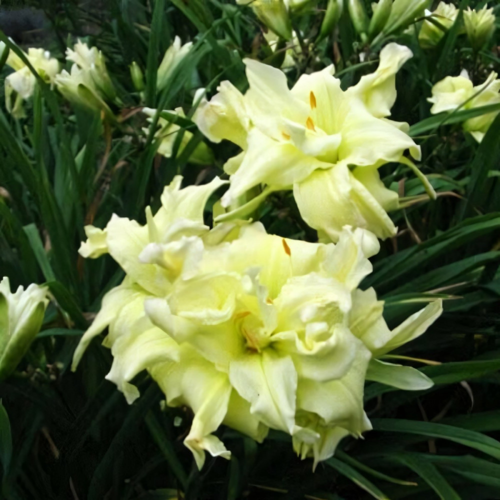 Очень необычный махровый нежно-лимонный лилейник! Такая окраска великолепно контрастирует с яркой темно-зеленой листвой. Высота растения - 70-80 см, диаметр цветка до 12 см.