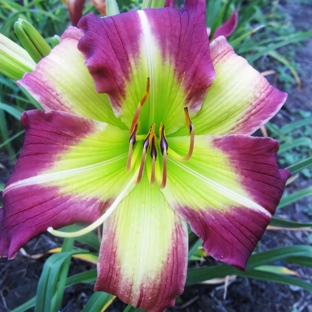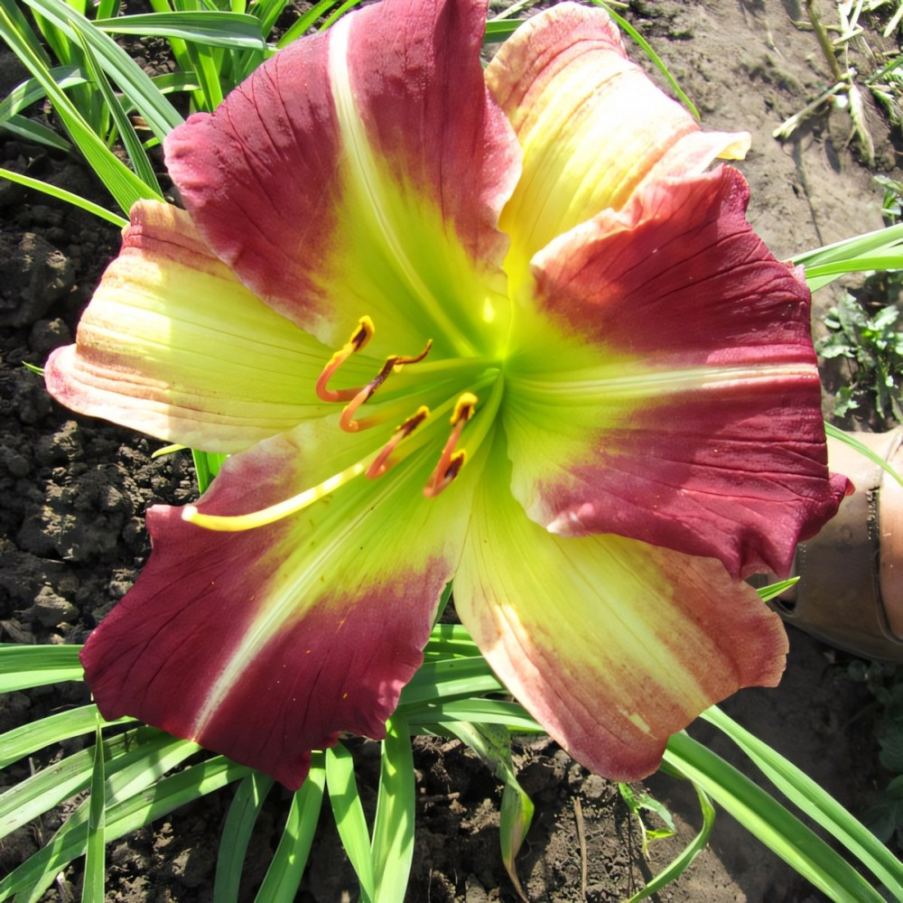 Высота - 70 см, диаметр цветка - до 20 см. Очень крупный цветок винно-красного цвета с зеленым центром. Зимостойкий, хорошо нарастает. Очень красивый, сортовые качества отлично проявляет в первый год посадки. ОГРОМНЫЙ, КРАСИВЫЙ, ЦВЕТЕТ ВСЕ ЛЕТО! Сказочно хорош!