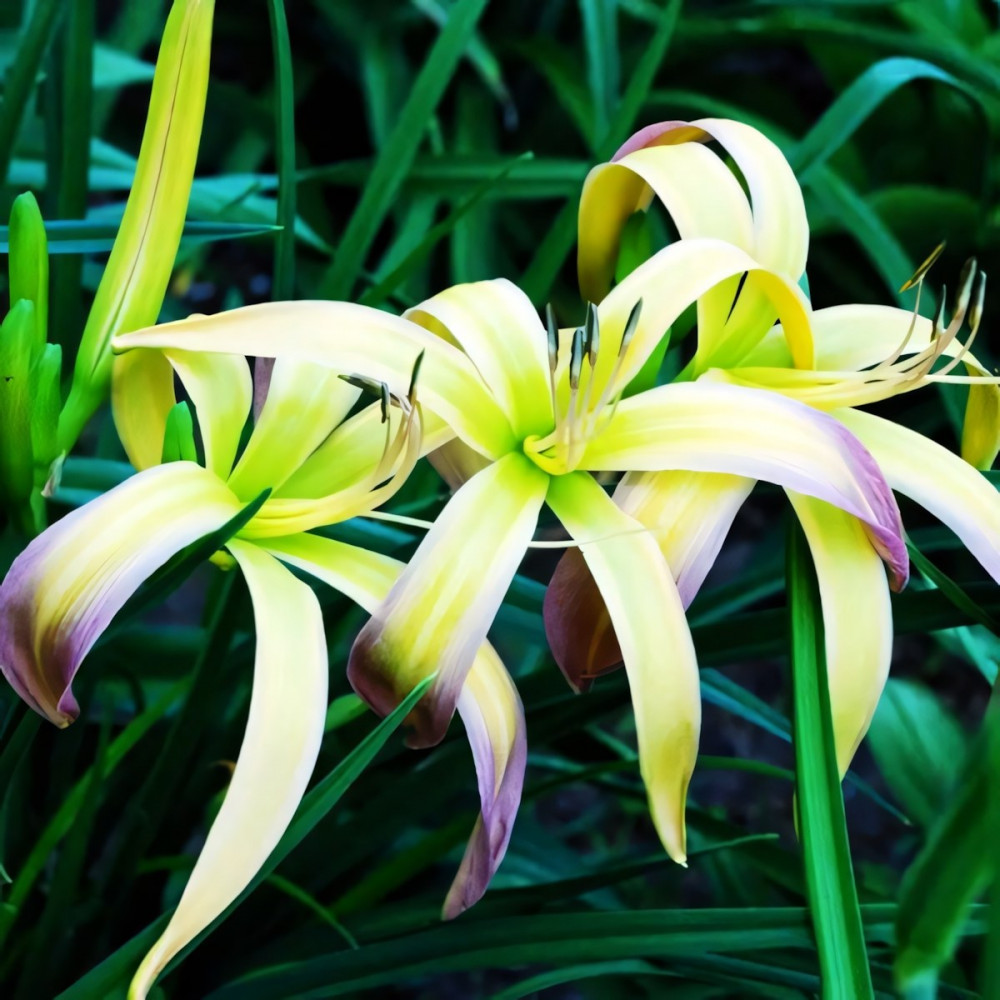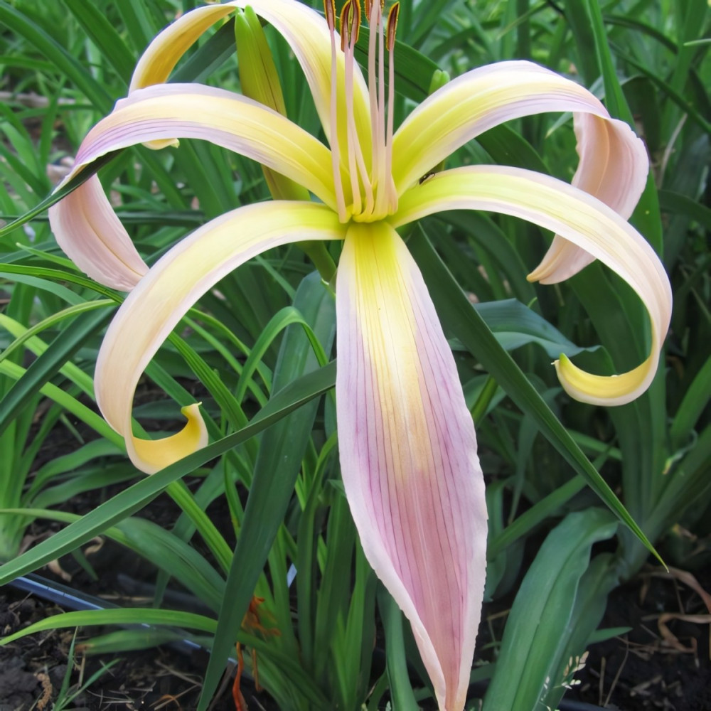 Лилейник - спайдер, паукообразные цветки, очень крупные с узкими листочками розово-лавандового цвета, горло большое, салатовое. Очень необычен, тропики - да и только! Повторноцветущий.