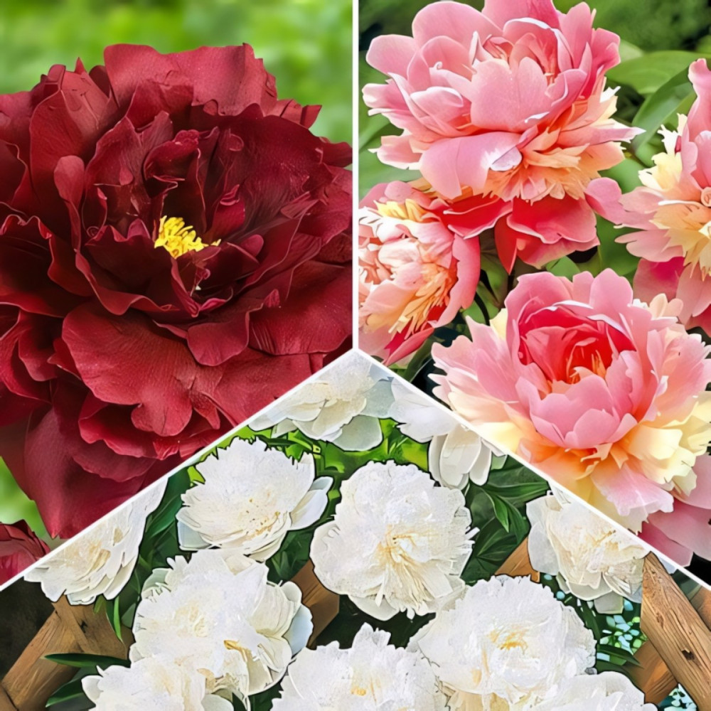 Хотите наслаждаться пышным цветением бутонов разных оттенков одновременно? Тогда закажите комплект пионов из 3 сортов. Крупные ароматные цветы украшают клумбы и отлично смотрятся в букетах. Кусты высотой 80-100 см долго остаются красивыми, превращаясь к сентябрю из зеленых в зелено-бордовые. Уход за всеми сортами заключается в подкормке и регулярном поливе. А покупая комплект, вы экономите 15 % от общей стоимости.