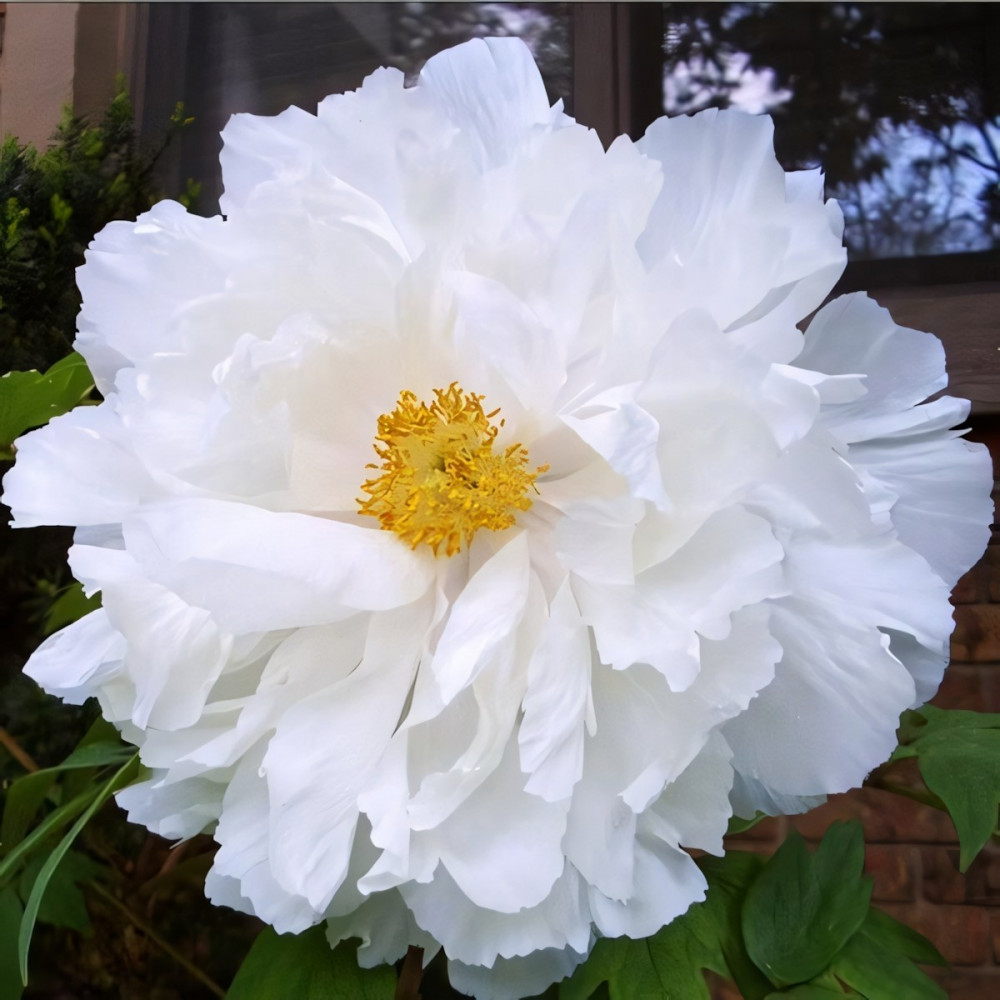 Сорт с белоснежными, полумахровыми цветками и золотистым венцом из многочисленных тычинок. Старинный сорт, в Китае именуемый Yu Ban Bai, считается одним из самых белых. Однако, завоевал он любовь не только уникальным оттенком цветов. Напоминающие лотосы цветы, хорошо заметны на фоне темно-зеленой резной листвы. Благодаря жестким цветоносам, пионы прекрасно смотрятся в букете. Их легкий сладковатый аромат ненавязчиво создает настроение весны и радости. Корень пиона привит на травянистый.