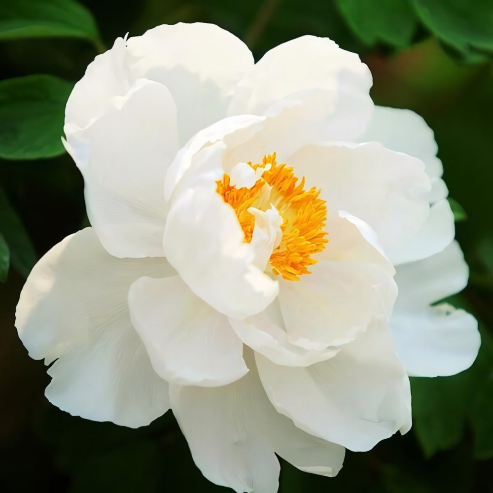 Кустарник с крупными, ярко-зелеными листьями. На одном кусте может быть от 30 до 70 цветков белоснежного цвета. Растение декоративно и после цветения из-за необычной формы листьев. Пион неприхотлив, устойчив к болезням. На одном месте без пересадки может расти более 50 лет. Рост энергичный. Корень пиона привит на травянистый.
