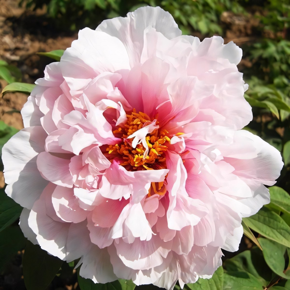 Обилие крупных махровых цветков с тонким ароматом на высоком кусте. Волнистые лепестки розовые у основания, и почти белые по краям. Недаром второе название сорта - "Цветы персика, укрытые снегом". По форме цветок похож на большой и пышный восхитительный помпон. Цветет в середине сезона. Корень пиона привит на травянистый.