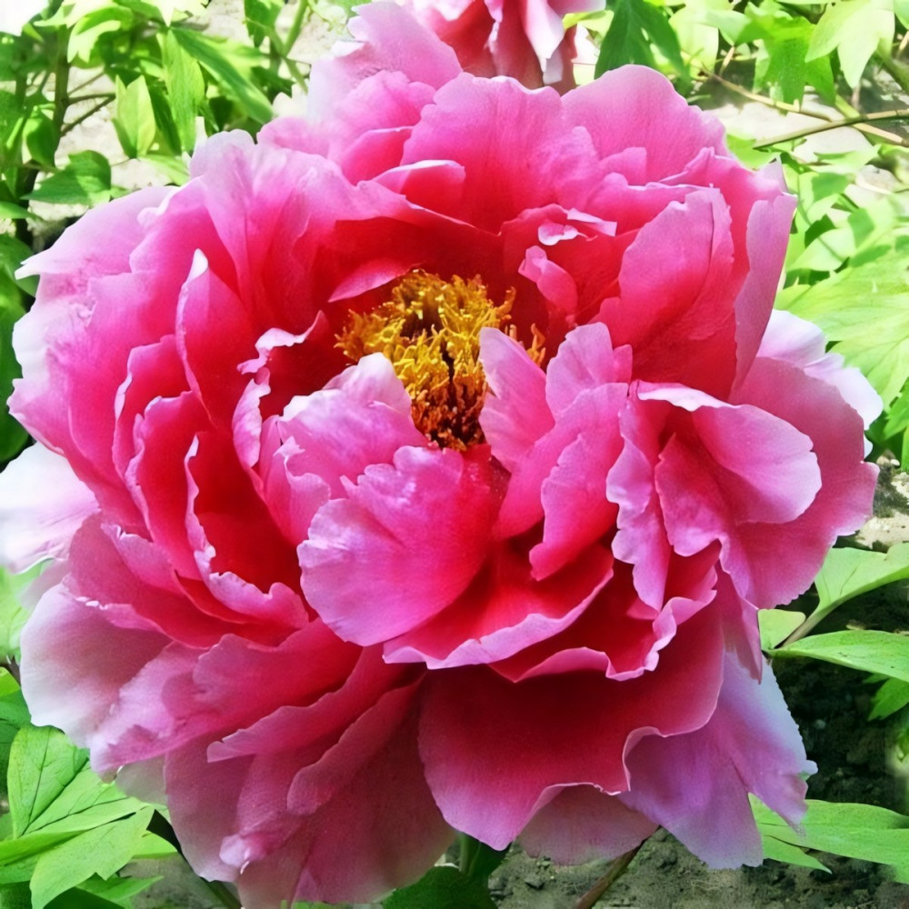 Цветки махровые, крупные, розово-красные, корончатой формы. Рост энергичный. Цветет рано. На одном кусте может расцветать до 70 соцветий. Благодаря такому обильному цветению кустарник выглядит очень эффектно. При правильно уходе на одном месте пион может расти до 20 лет. Корень пиона привит на травянистый.