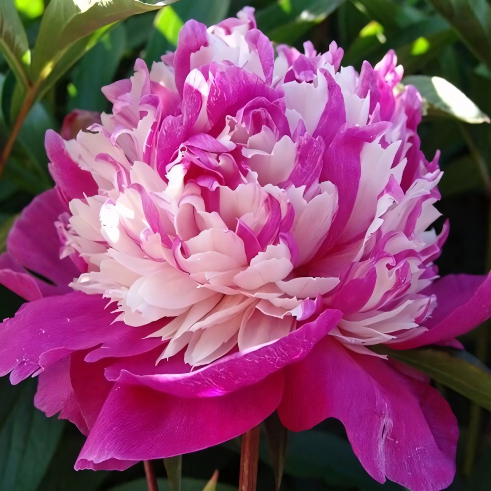 Этот пион привлекает внимание всех истинных любителей цветов. В центральной части цветка - хохолок, состоящий из белых и ярко-розовых лепестков. Обрамляют середину крупные округлые лепестки ярко-розового цвета. Стебли прочные, прямостоячие. Листва темно-зеленая, к осени приобретает красноватый оттенок. Обладает приятным ароматом. Служит для украшения цветников, бордюров, как в одиночных, так и в групповых посадках. Используется для создания букетов.