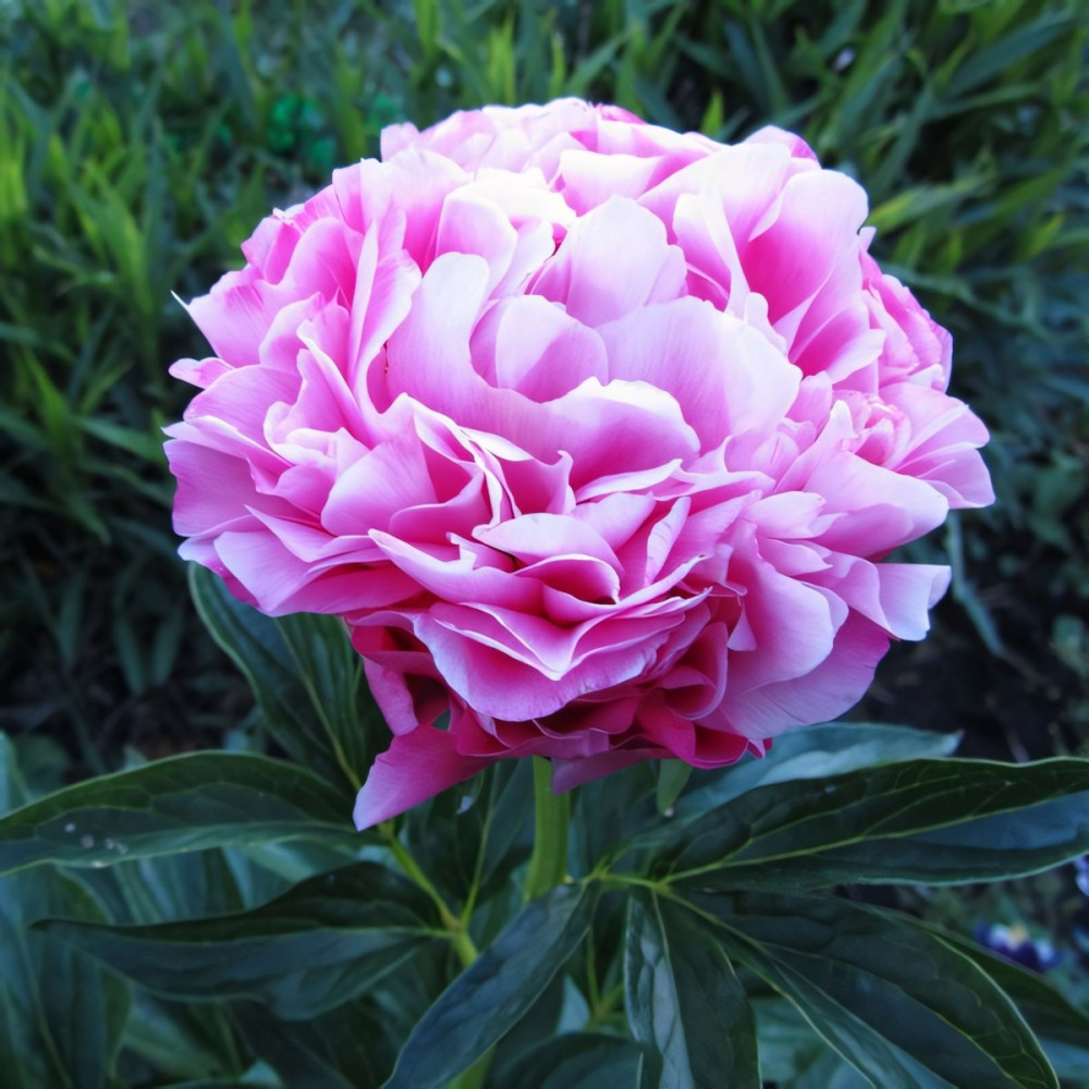 Бомбовидный пион - необычный цветок - хамелеон. Соцветия сначала имеют темно-розовую расцветку, затем они светлеют, а по краям появляется тонкая розовая кайма.