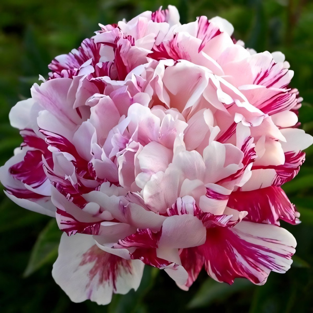 Эффектное многолетнее растение. Необычайно большие и красивые цветы. Форма цветка бомбовидная. Внешние лепестки крупные, округлые бело-розового цвета. Внутренние - короткие, узкие бело-кремово-розовые с малиновыми штрихами. Обладает нежным ароматом.