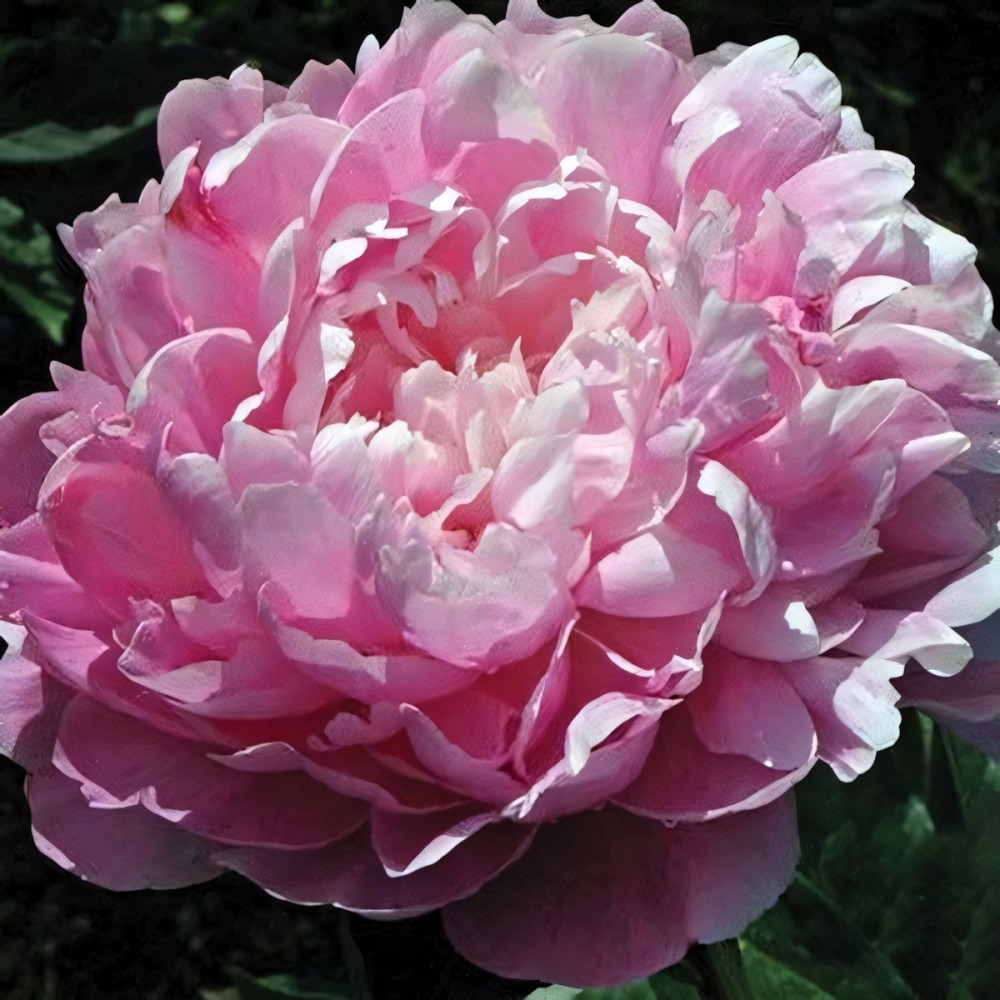 Относится к многолетникам, которые могут расти на одном месте до 50 лет. За неприхотливость и легкость выращивания - пользуется большой популярностью у садоводов. Стебли прочные, прямостоячие. Листва темно-зеленая. Цветок махровый, розовидной формы. Лепестки розово-перламутрового цвета, на кончиках светлее. Обладает слабым ароматом.