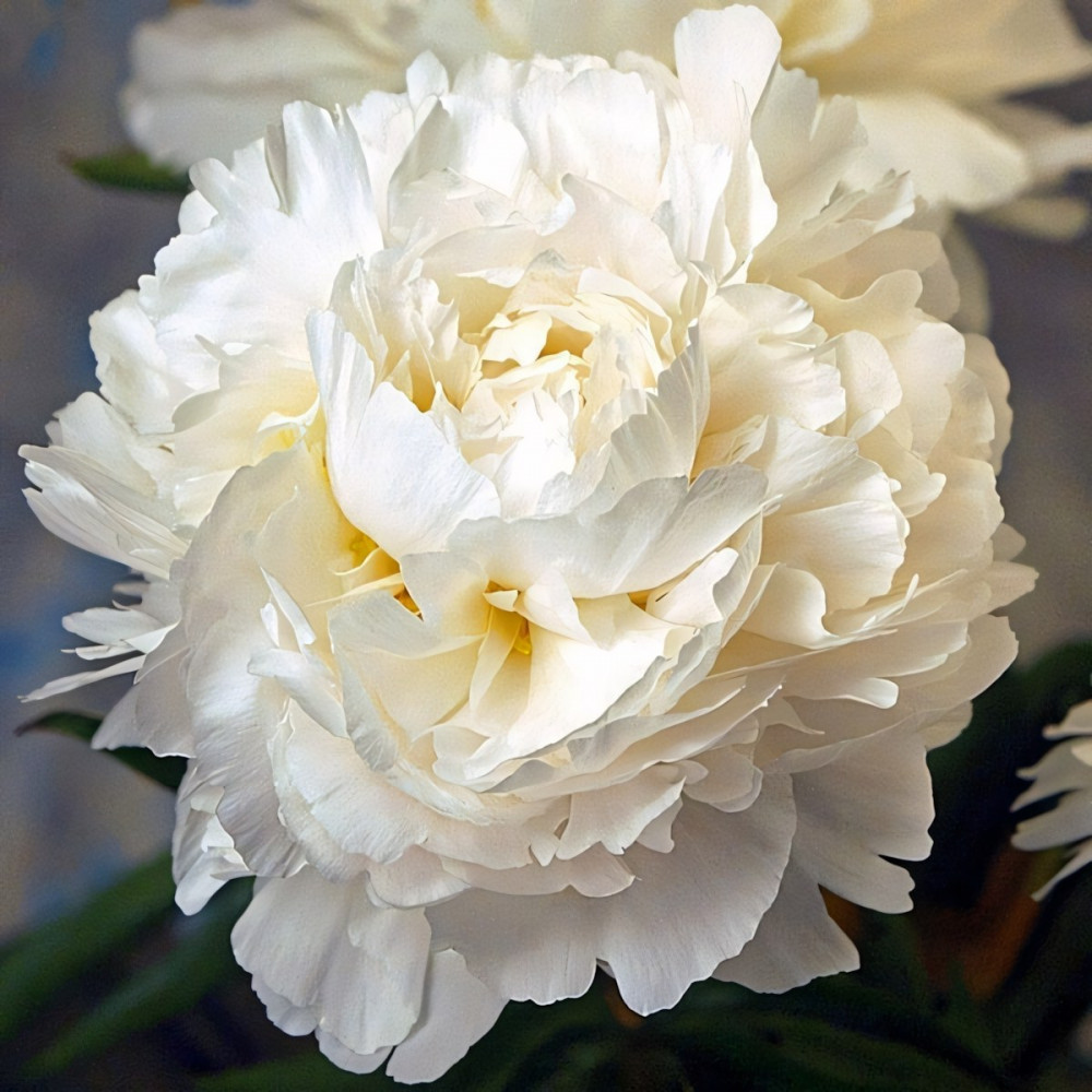 Относится к многолетникам, которые могут расти на одном месте до 50 лет. За неприхотливость и легкость выращивания - пользуется большой популярностью у садоводов. Стебли прочные, прямостоячие. Листва темно-зеленая. Махровый полный цветок чисто белого цвета. Хорошо держит форму во время всего срока цветения. Обладает легким ароматом.