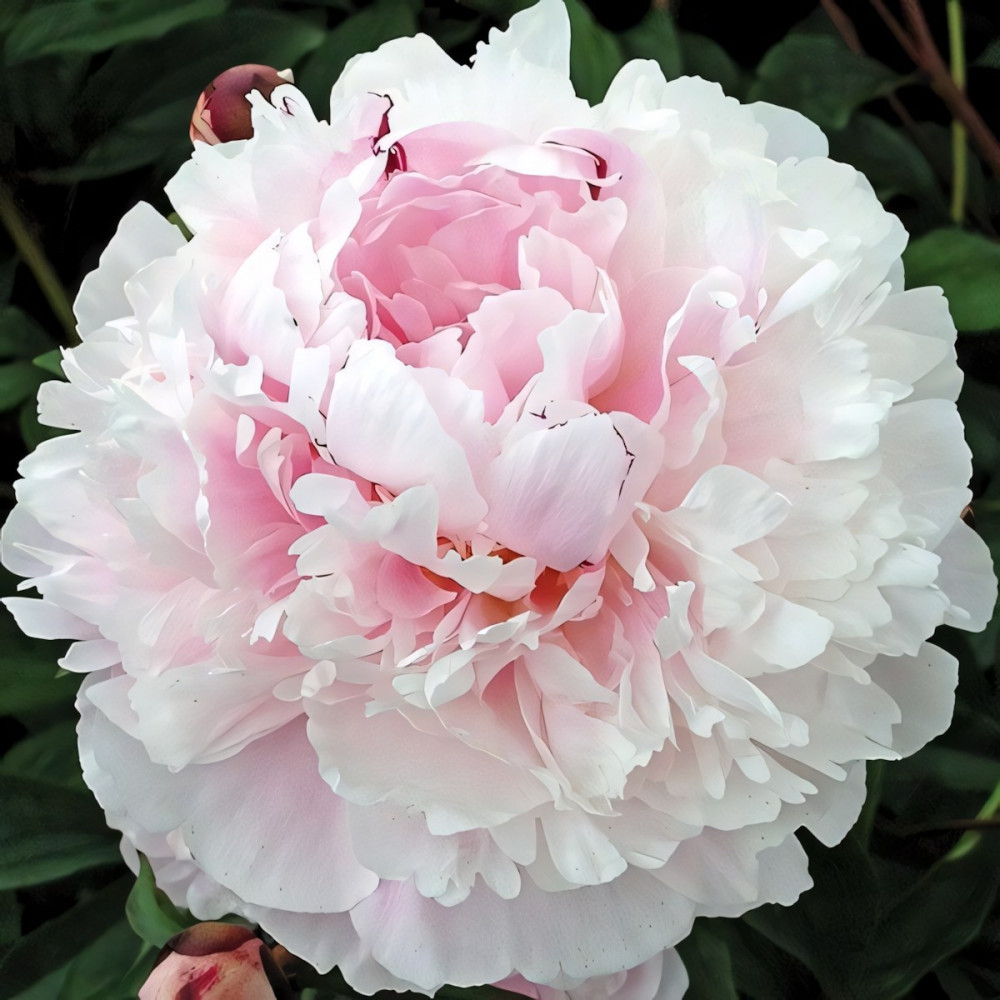 Относится к многолетникам, которые могут расти на одном месте до 50 лет. За неприхотливость и легкость выращивания - пользуется большой популярностью у садоводов. Стебли прочные, прямостоячие. Листва темно-зеленая. Крупные, воздушно - махровые цветки светло-розового цвета с редкими красными вкраплениями. Тычинки видны. Запах слабый. Служит для украшения цветников, бордюров, как в одиночных, так и в групповых посадках. Используется для создания букетов. Эта новинка, привлечет внимание всех истинных любителей цветов!